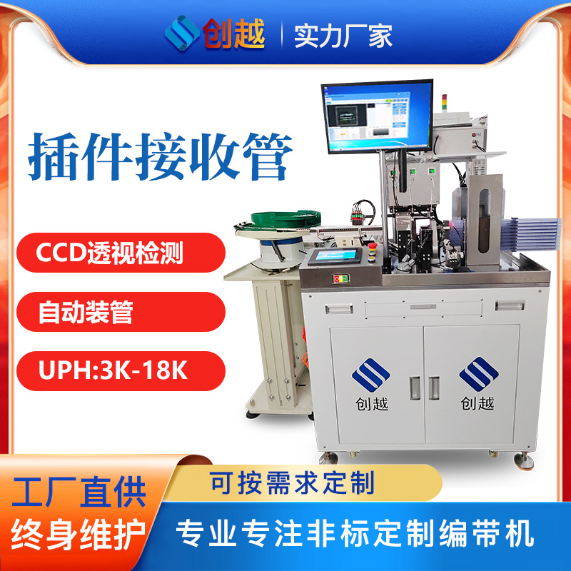 產(chǎn)品特點:編帶速度快,工作穩(wěn)定,性能可靠;通用性廣,適用于電子元件、LED、晶振、二極管、三極管、IC芯片、被動元器件等;使用壽命長,占地空間小,結(jié)構(gòu)緊湊,編帶高度可調(diào),靈活方便,操作維護(hù)簡單,UPH可達(dá)60K/H;關(guān)鍵機構(gòu)配置選配靈活,可搭配國內(nèi)外不同品牌標(biāo)準(zhǔn)件;可搭配多款國內(nèi)外CCD影像識別系統(tǒng),滿足客戶的常規(guī)要求;具有自動補料功能,補料方式可選機械手補料或退格自動補料;故障檢測設(shè)計完善,警報一目了然;可選配CIE測試功能,復(fù)測CIE參數(shù);PLC電控系統(tǒng),準(zhǔn)確穩(wěn)定,故障率低;可結(jié)合MES系統(tǒng)功能,即時監(jiān)控機臺運轉(zhuǎn)狀態(tài),實現(xiàn)數(shù)據(jù)采集功能;可設(shè)置設(shè)備節(jié)能模式,在暫停時設(shè)定時間內(nèi),會自動將系統(tǒng)高耗能的電、氣關(guān)閉;